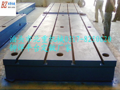 泊頭北重機(jī)械是機(jī)床配套產(chǎn)品制造商.主要產(chǎn)品:鑄鐵鉚焊平臺(tái)、檢驗(yàn)平臺(tái)、鉚焊平臺(tái)、火工平臺(tái)、機(jī)床工作臺(tái),劃線(xiàn)平臺(tái),機(jī)床鑄件等量具.我公司產(chǎn)品種類(lèi)齊全、價(jià)格合理、產(chǎn)品質(zhì)量高.歡迎致電咨詢(xún)0317-8250620.