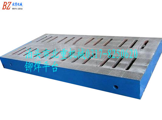 鑄鐵鉚焊平臺表面鐵液與砂粘在一起,形成粗糙的表面,用外觀檢查可以發(fā)現