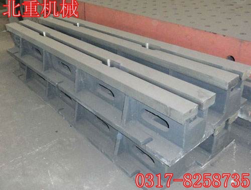 鑄鐵T型槽鐵工作面硬度為HB170-240,經過兩次人工處理(人工退火600度-700度和自然時效)使該產品的精度穩定,耐磨性能好。鑄鐵地軌、鑄鋼地軌長度規格可以做成500mm到4000mm以內的各種規格。外形尺寸、每米長度重量要根據客戶要求承重來確定,北重機械制造免費為客戶設計圖紙、提供前期服務!